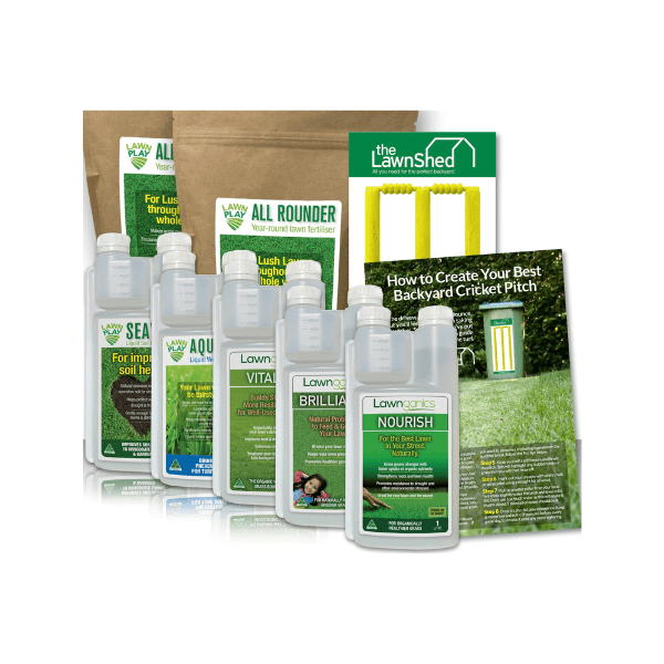 Mix 200ml of each, LAWNGANICS NOURISH, VITALISE and BRILLIANCE and apply monthly, start 3 months after the first application of LAWN PLAY ALL ROUNDER. Leave on the lawns leaves, do not water in.