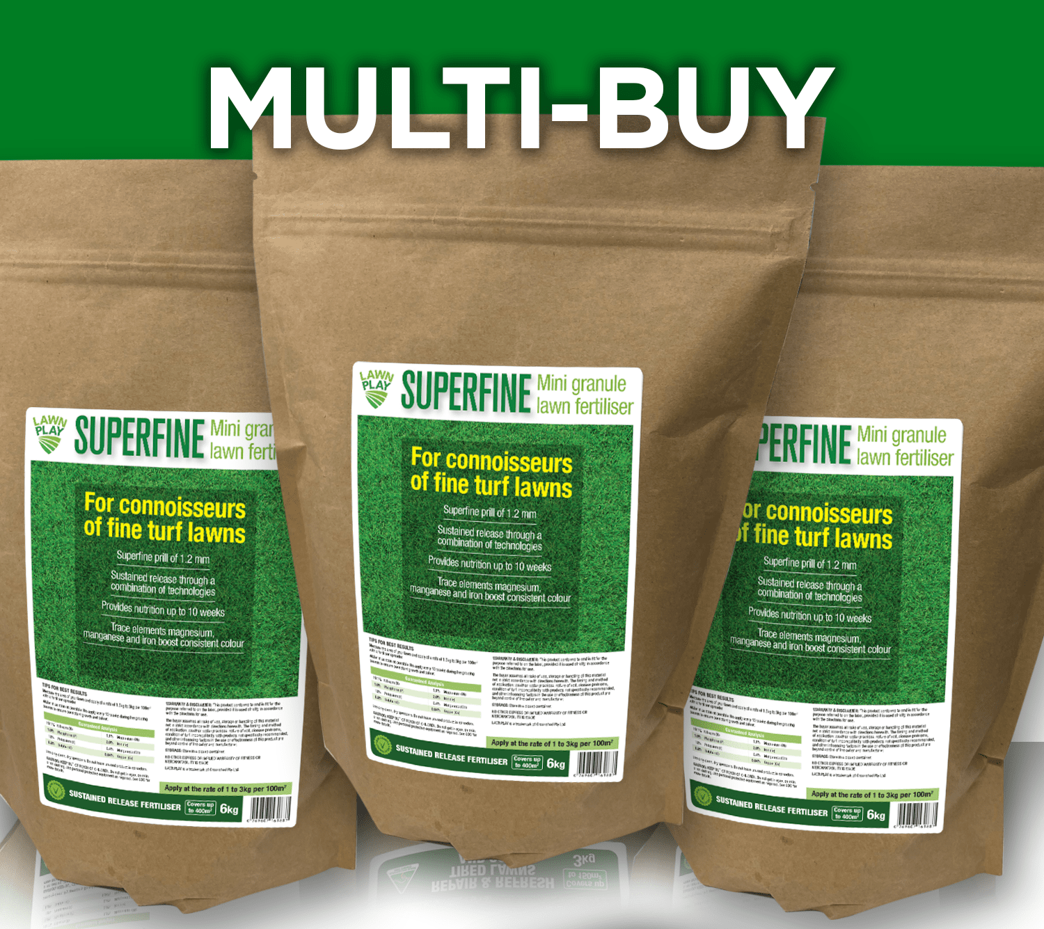 Each 6kg bag covers up to 400m² and includes essential trace elements like magnesium, manganese, and iron for deeper, healthier colour and vigorous growth. Ideal for use during the growing season, Lawn Play SuperFine ensures your lawn stays green and strong with every application.