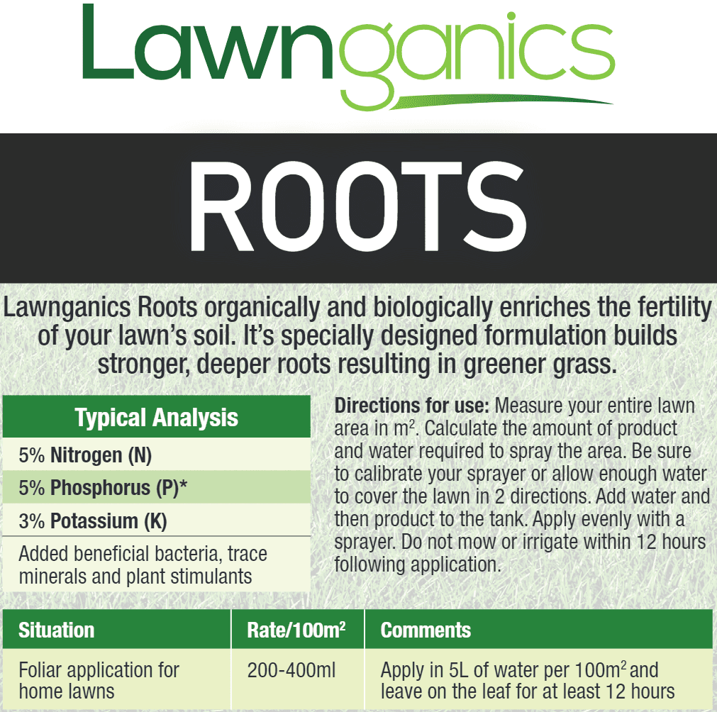 Lawnganics Roots is a patented formulation that combines a whole host of great ingredients to drive root production in lawns.