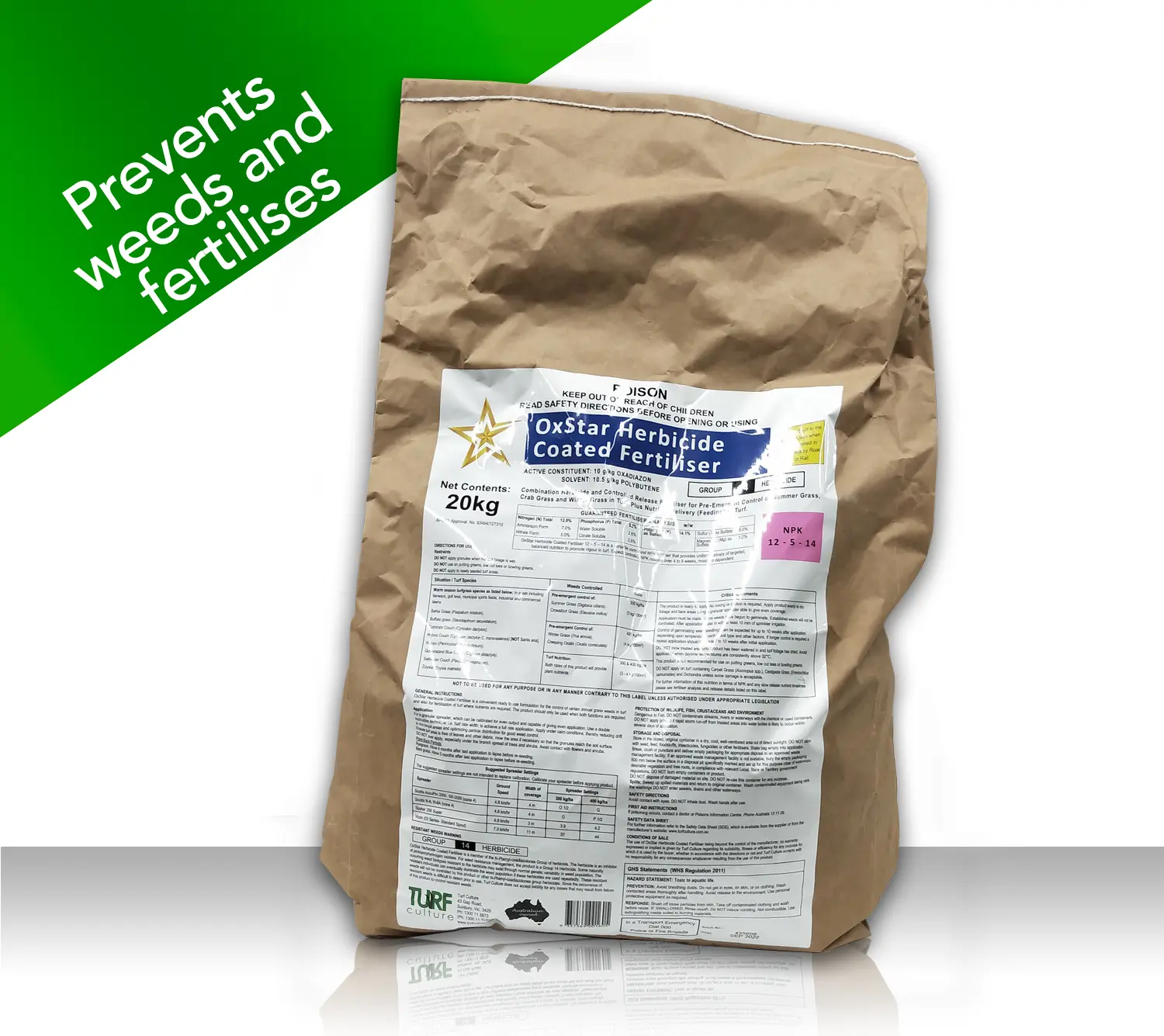 OxStar is a premium quality lawn fertiliser with all the nutrition to kick start your lawn in the right direction from day 1. It’s high phosphorous (P) formulation kick starts your lawns root development while the active ingredient Oxadiazon acts as a weed preventer by forming a barrier in your soil to prevent emergence of weeds like Winter Grass, Summer Grass and Creeping Oxalis.