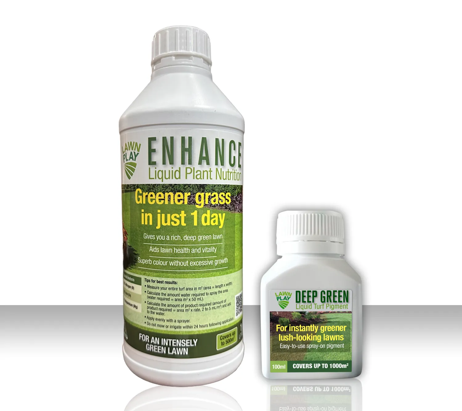 - LawnPlay Deep Green – Offers cosmetic green colour while also helping absorb sunlight and buffer frost damage.